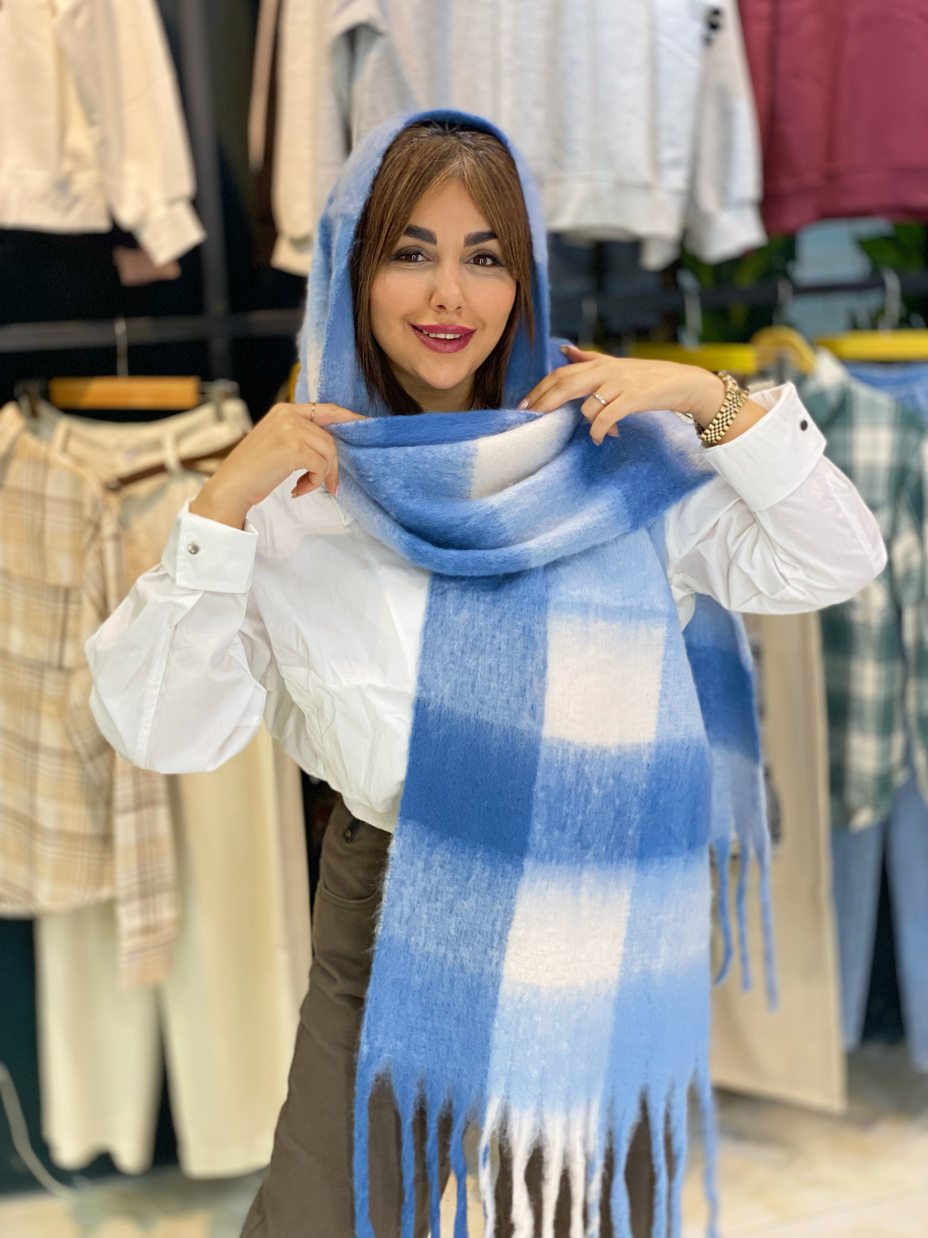 بیگ اسکارف زنانه چهار خونه آبرنگی جنس موهر وارداتی کد007ناموجود